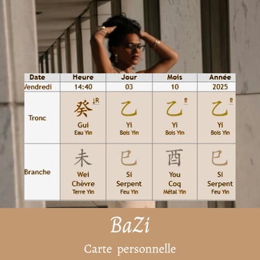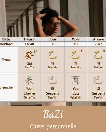 Analyse de ton thème de naissance (tes 4 piliers : année, mois, jour, heure).